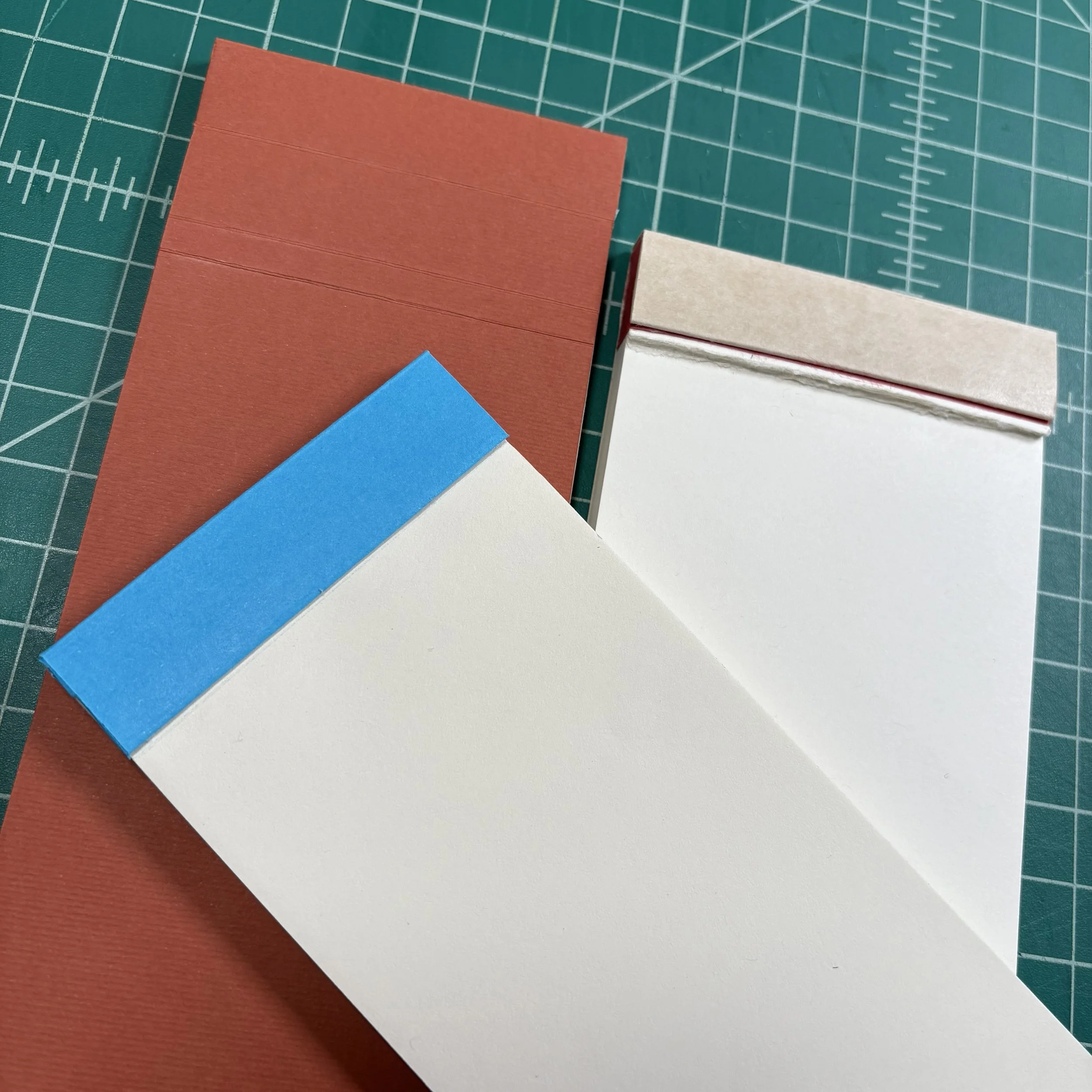 Pare leather for and cover the two book blocks made in the fall 2025 Binding Fundamentals workshop