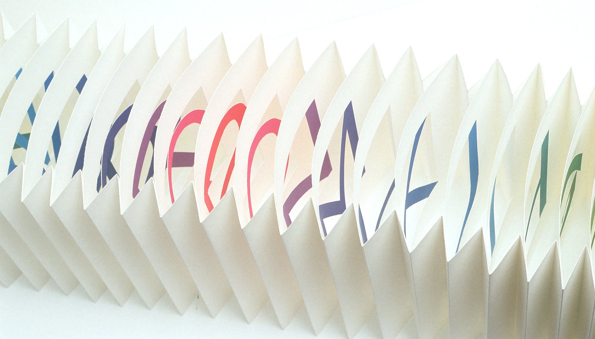 Tunnel book with letters of the alphabet colored to run through the spectrum and back.
